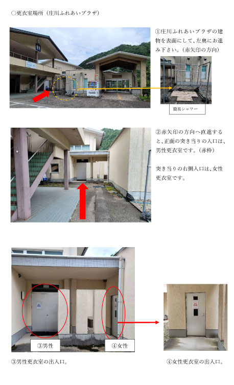 庄川ふれあいプラザ内にて、男女別の更衣室をご準備してあります。