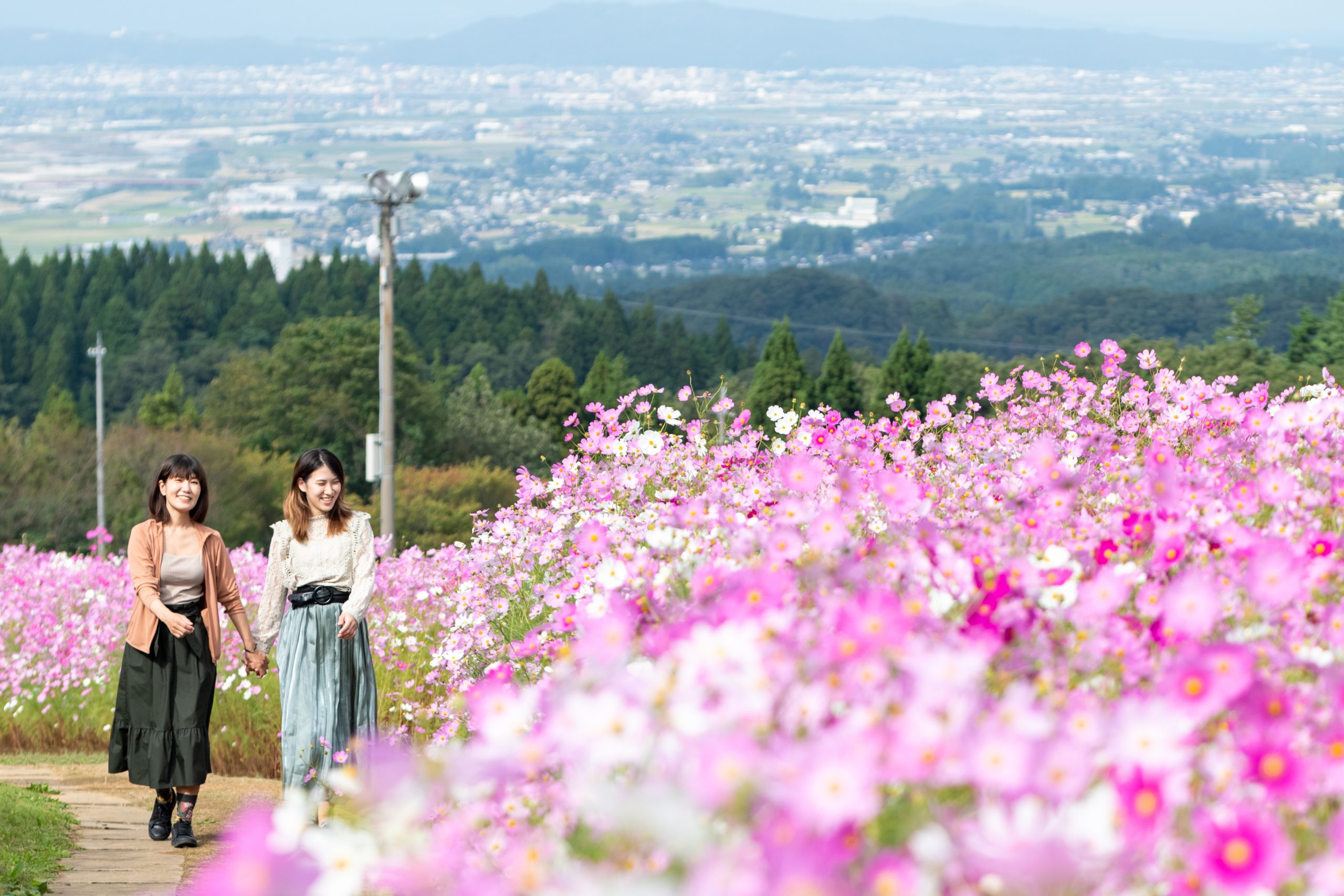 夢の平スキー場のゲレンデ一面に広がる約100万本のコスモス。
